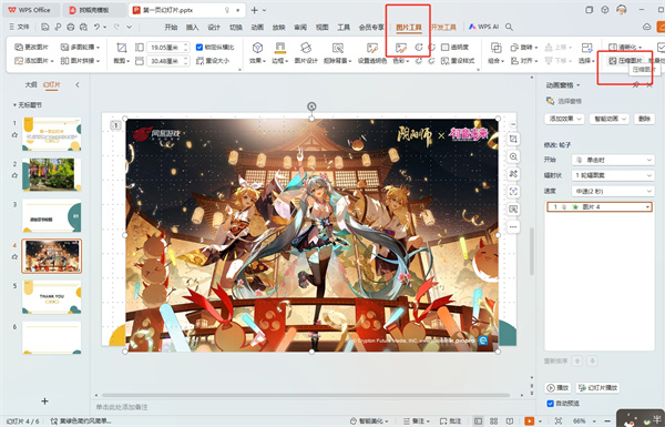 2、选中图片后,点击在“图片工具”选项卡下的“压缩图片”。