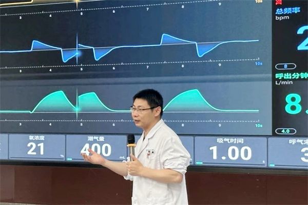 同时,现场利用安保医疗呼吸机一方面进行了VC与PC、SIMV与PSV、PRVC与BIPAP模式的模拟教学,把理论与呼吸机波形、参数相结合,另一方面开展了分组案例讨论、ARDS病例实战、AECOPD病例实战等,帮助学员更好地消化和理解。