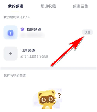 4、在我的频道里找到我创建的频道,点击右侧的小按钮【设置】选项。