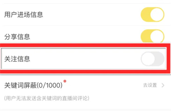 6、将界面中把【关注信息】右侧的按钮关闭,即可屏蔽掉频道公屏的关注信息。